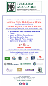 National Night Out Against Crime (Sponsored by the 17th Precinct Community Council) Tuesday, August 6, 2024, 5:00 to 8:00 p.m....